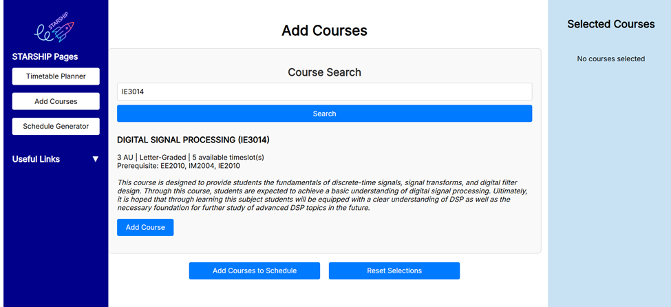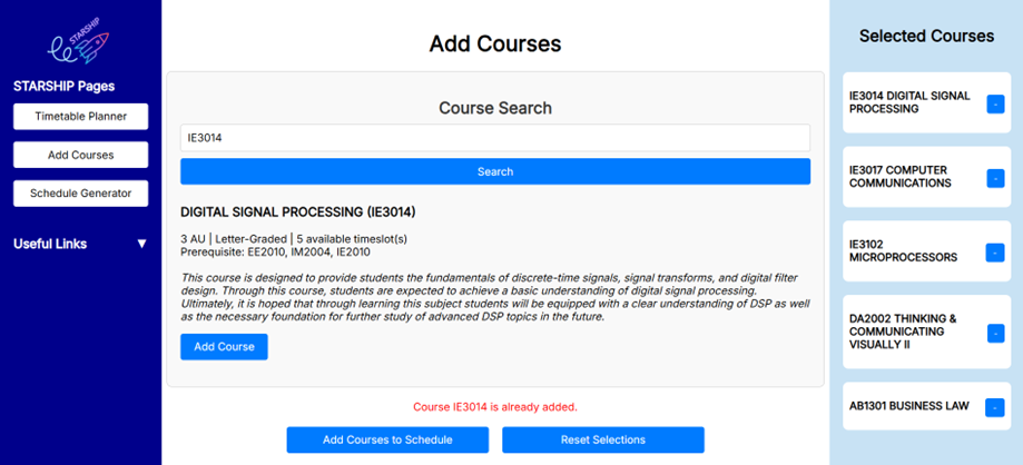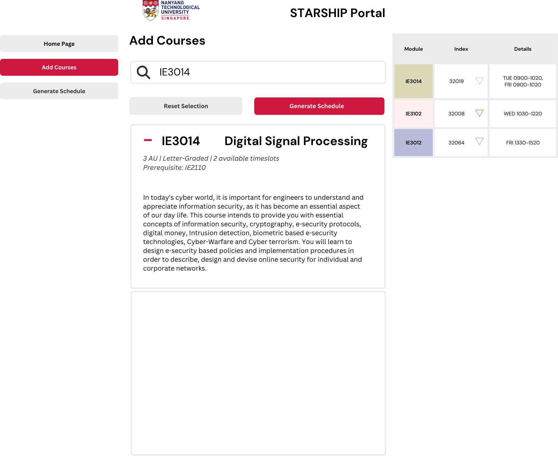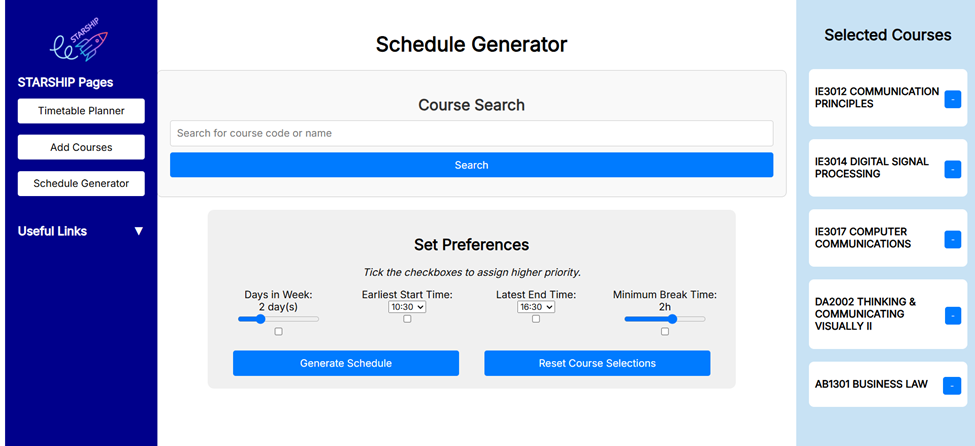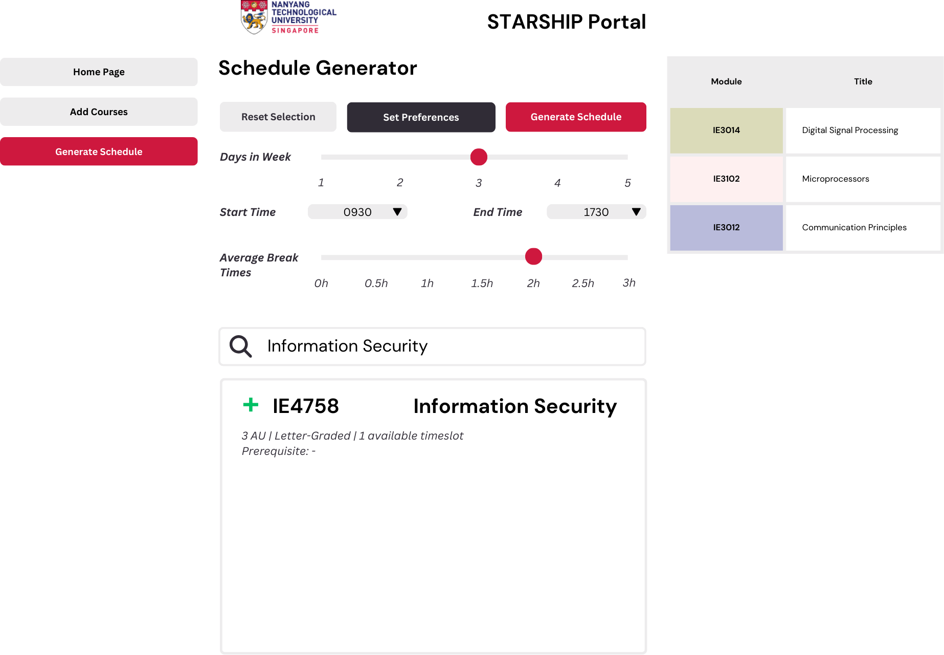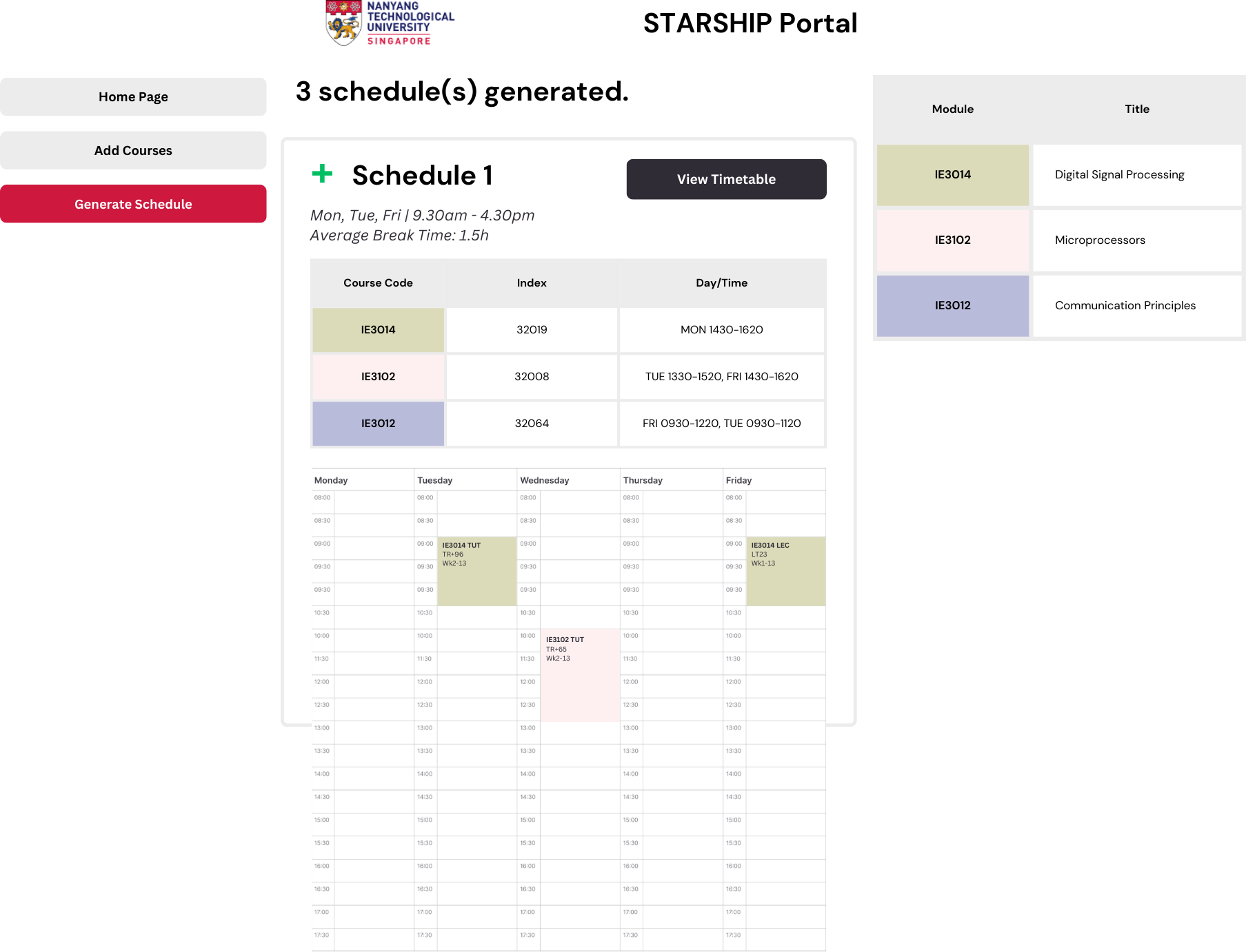 STARSHIP Planner: A course planner for NTU students with in-built automated timetable scheduling algorithm
